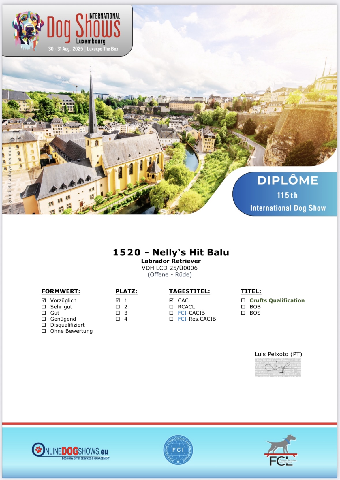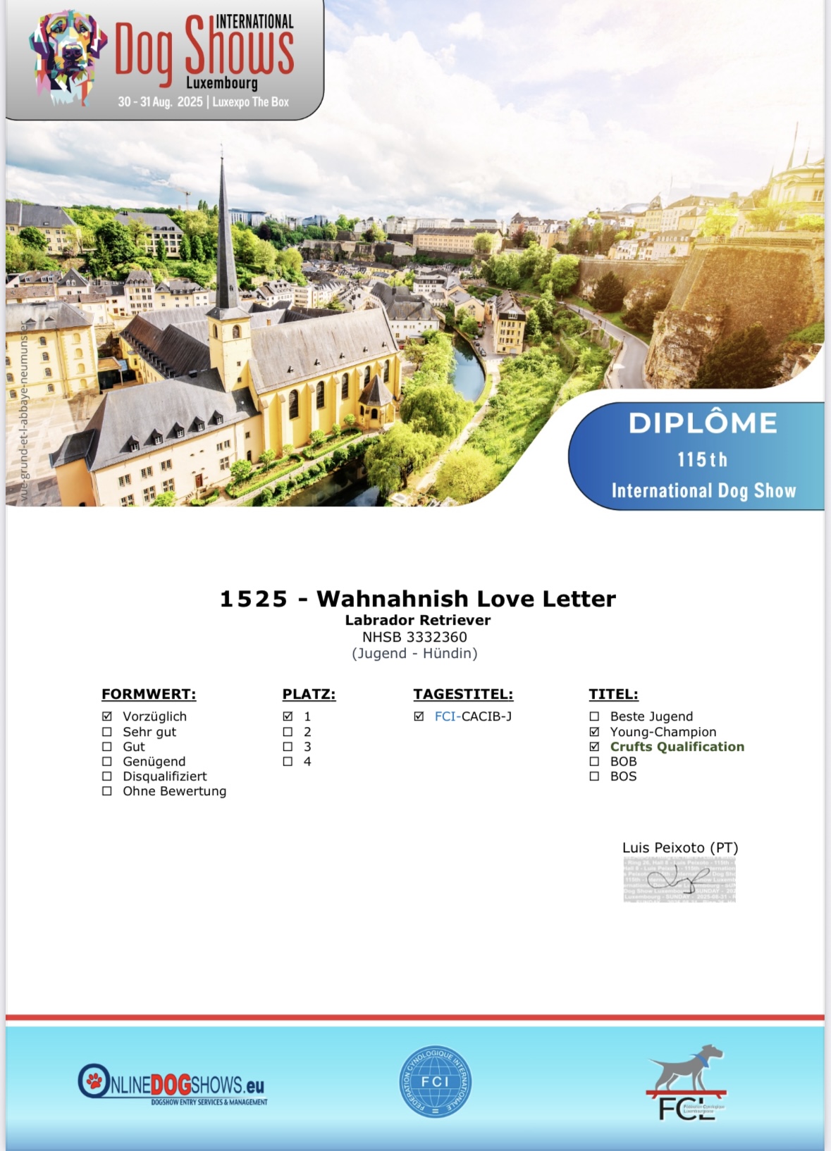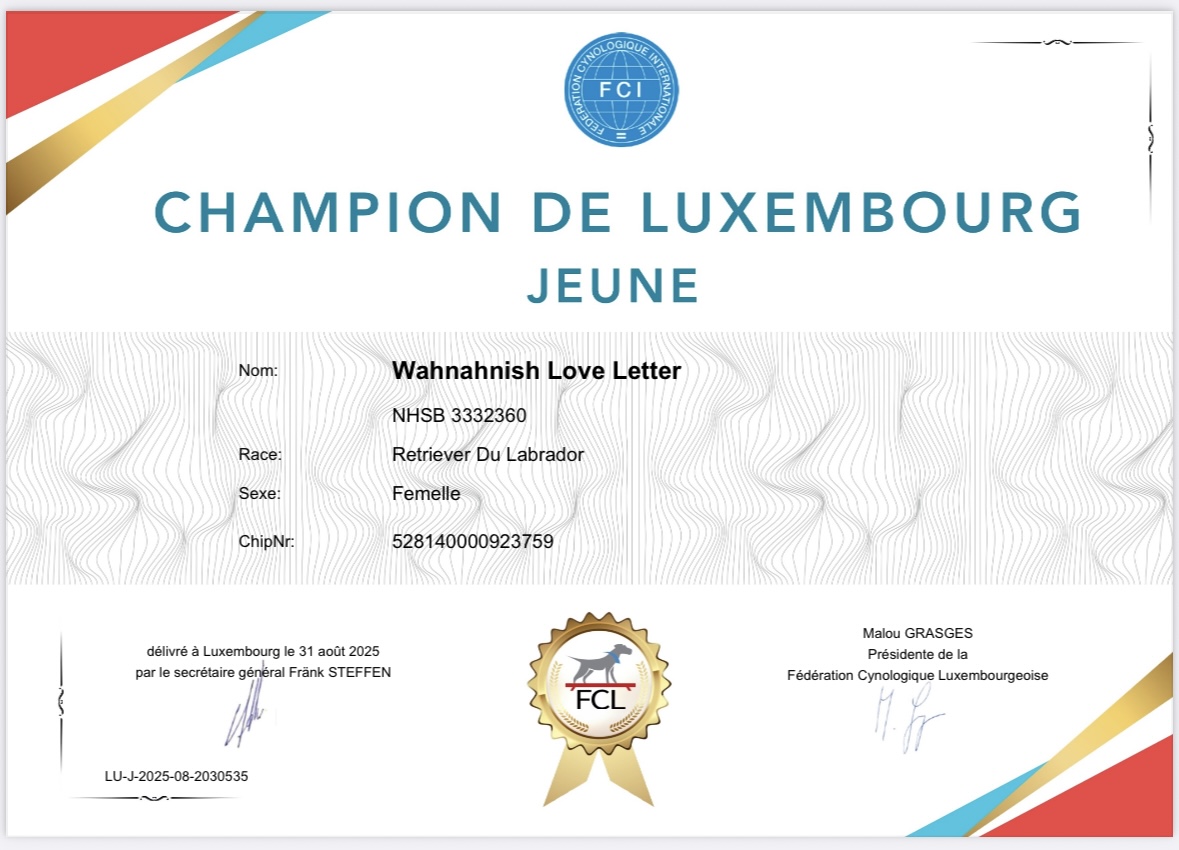 Heute waren wir auf der 115. International Dog Show in Luxemburg und freuen uns über folgende Ergebnisse: