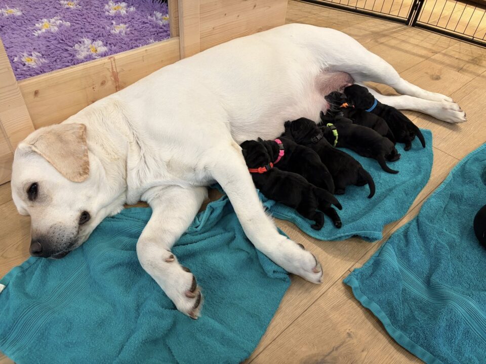 Mutter und Welpen sind wohlauf und wir freuen uns nun auf die nächsten Wochen der Aufzucht.